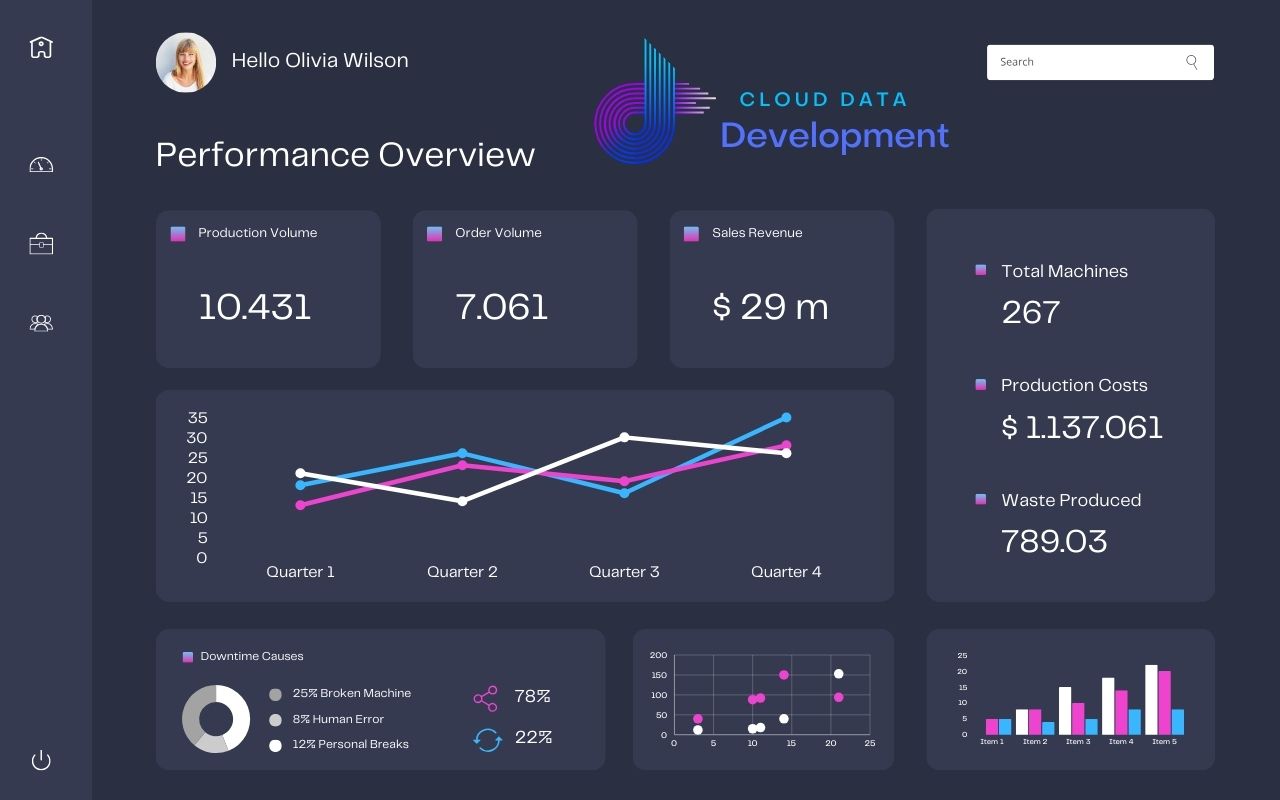 Optimiza recursos, elimina tareas repetitivas y toma decisiones basadas en datos reales. Convierte tus datos en decisiones inteligentes con Dashboards interactivos, visuales y personalizados para tu empresa. En Cloud Data Development convertimos tus ideas en herramientas inteligentes para hacer crecer tu negocio.